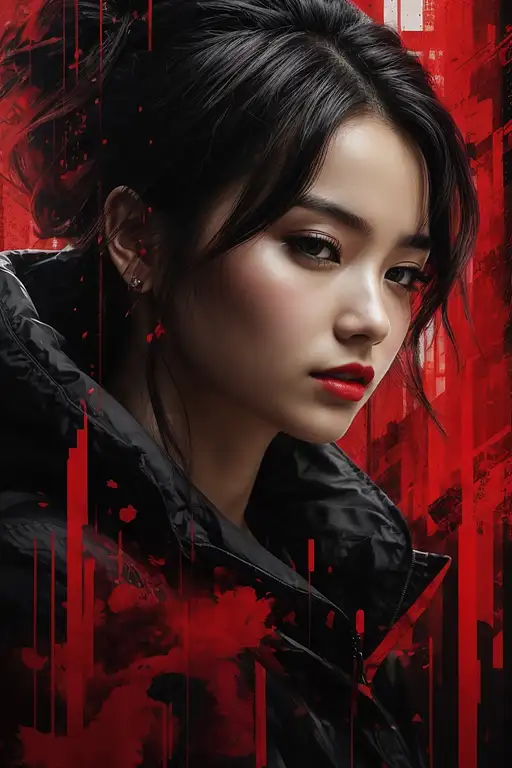 2 years ago a woman with black hair and a red background, a photorealistic painting by Kim Deuk-sin, trending on cg society, computer art, behance hd, artstation hd, poster art elielborges 4 160