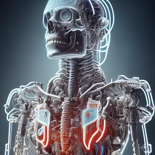 over 2 years ago Ultra-detailed cyborg in a spaceship, with anthropomorphic cybernetic skeleton elements on metal armor, neon lights reflections, reflection mapping, intricate design and details, dramatic lighting, hyperrealism, photorealistic, cinematic Professional photography, bokeh, natural lighting, canon lens, shot on dslr 64 megapixels sharp focus TennBirdDog 2 190