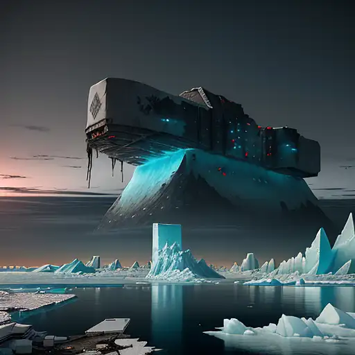 2 years ago Landscape, post-apocalyptic, cyberpunk polar bear, standing on a floating iceberg, in front of the nuclear waste pollution that covers the ground, in the background, abandoned modern cities, cold arctic sky, 4k, hd, dramatic lighting, detailed, hyper-realistic, focused, extreme detail, unreal engine 5 Tiloup1963 1 210