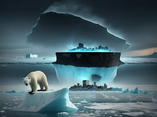2 years ago post-apocalyptic landscape, cyberpunk, of a polar bear, standing on a floating iceberg, in front of the pollution of nuclear waste in the ocean, in the background, the destruction of modern cities, cold arctic sky, 4k, hd, dramatic lighting, detailed, hyper-realistic, focused, extreme detail, unreal engine 5 Tiloup1963 0 85