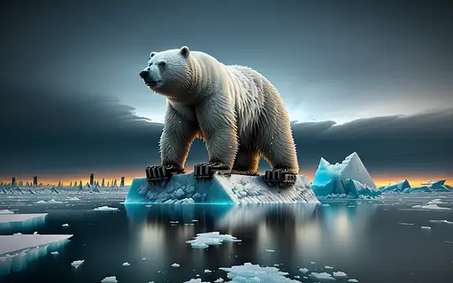 2 years ago landscape, post-apocalyptic, cyberpunk, of a polar bear, standing on a floating iceberg, in front of the nuclear waste pollution that covers the ground, in the background, abandoned modern cities, cold arctic sky, 4k, hd, dramatic lighting, detailed, hyper-realistic, focused, extreme detail, unreal engine 5 Tiloup1963 0 63