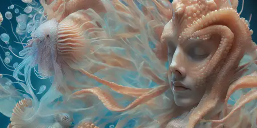 2 years ago Goddess portrait close-up ribcagel. mermaid head, nautilus, orchid, skull, blue hair, bioluminescent creatures, complex artwork . octane render, trending on artstation, t symmetrical artwork. cinematic, hyper realism, high level of detail, octane render, 8k Tiloup1963 0 92