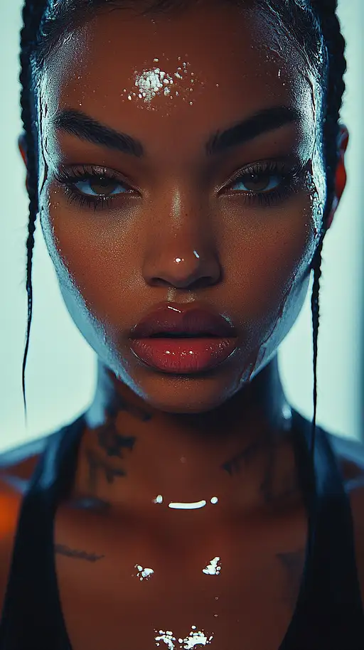 product photography, full-body photography, long-shot photography, professional black american model, score_9, score_8_up, score_7_up, detailed, detailed body, detailed face, Expressiveh, ct, BREAK, barn, night, light, (standing, indoor, blushing, shy, look away ), 1girl, black girl, eyelashes, hazel eyes, puffy lips, conical breasts, Long hair, brown hair, braids, (chubby: 0.5), (shortstack:0.6), ebony skin, black pants and ankle boots, <lora:flat_chested_v4:1.4> ,<lora:epiCRealismHelper:1>