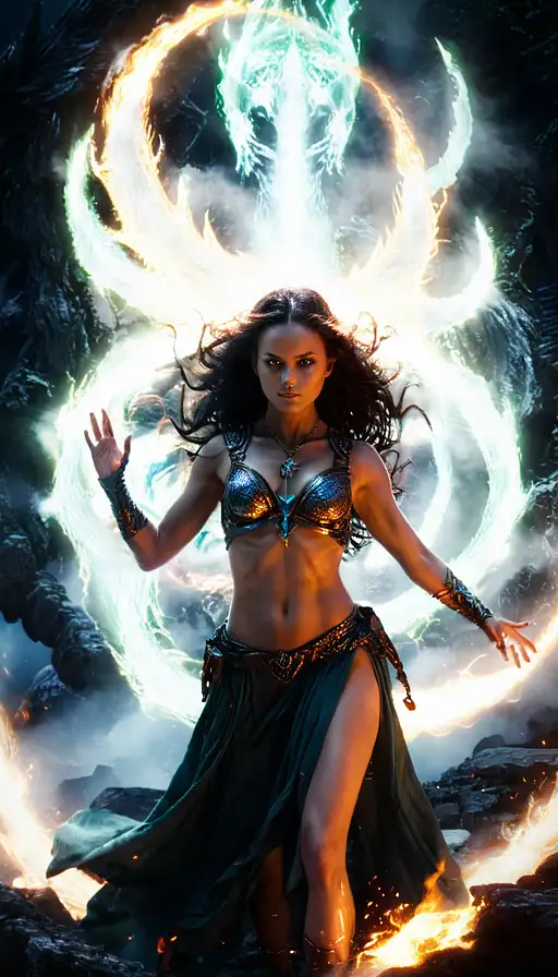OHWX WOMAN, 'Cyberpunk' illuminated on a holographic billboard, reflecting in the determined eyes of 1girl with cybernetic enhancements, her (((navel))) exposed, in an intense upperbody shot. Surrounded by crackling fire, cascading water, sharp ice formations, and electric lightning, amidst a futuristic cityscape, capturing the essence of high-tech chaos and energy, realized in a Photorealistic style with a Nikon D850 DSLR, 50mm f/1.4 lens, and dramatic chiaroscuro lighting", "negative_prompt": "(worst quality, low quality, illustration, 3d, 2d, painting, cartoons, sketch), open mouth, artifacts", "styles": ["MRE Elemental Art"], "real_prompt": ["art illustrating insane amounts of raging elemental energy turning into OHWX WOMAN, 'Cyberpunk' illuminated on a holographic billboard, reflecting in the determined eyes of 1girl with cybernetic enhancements, her (((navel))) exposed, in an intense upperbody shot. Surrounded by crackling fire, cascading water, sharp ice formations, and electric lightning, amidst a futuristic cityscape, capturing the essence of high-tech chaos and energy, realized in a Photorealistic style with a Nikon D850 DSLR, 50mm f/1.4 lens, and dramatic chiaroscuro lighting, avatar of elements. magical surrealism, wizardry. best quality, high resolution