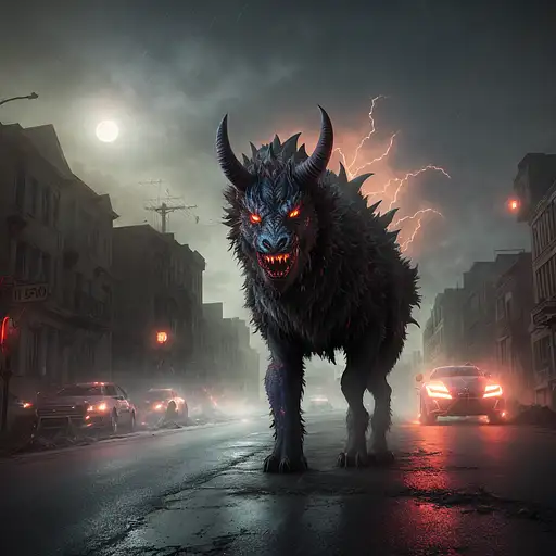 over 2 years ago a wild demonic monster charging through an abandoned street, motion blur, masterpiece, hyperrealistic, dust particles, dirt particles, debris, 8k, cinematic lighting, night, HDR, depth of field, bright lights, bloom, moon in the sky, <lora:epiNoiseoffset_v2:1> Verinax 1 92