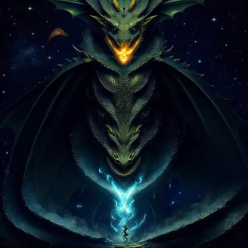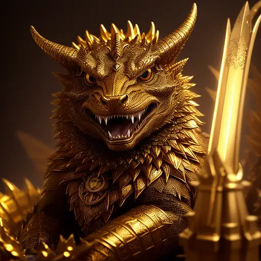 over 2 years ago (HDR, epic, digital, painting, hyperrealistic, cinematic lighting, Trending on artstation, anthropomorphic, dragon, portrait, creature, detailed clothing, detailed eyes, 8k, fine details, sharp focus, graphic, violent, gritty, dark fantasy) Cunning dragon guardian: Eyes flashing with calculated intelligence, the dragon protector stands poised in the treasure chamber, guarding hoards of glittering gold and treasured artifacts, ready to strike down any intruders with its razor-sharp claws and fiery breath. Verinax 1 110