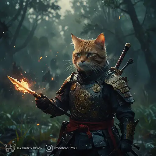 1 year ago Conceptual watercolor art by Benedick Bana (viewed from above ) 1 real cat, charging forward, detailed face, real cat in fantasy samurai armor, struggling to cross a misty swamp in the middle of a battlefield with multiple armies, swampy, foggy, cloudy, wearing a coat embroidered with the family crest, lots of samurai fighting in the background, masterpiece, best quality, high quality, dramatic lighting, shadowy WonderAI1980 1 54