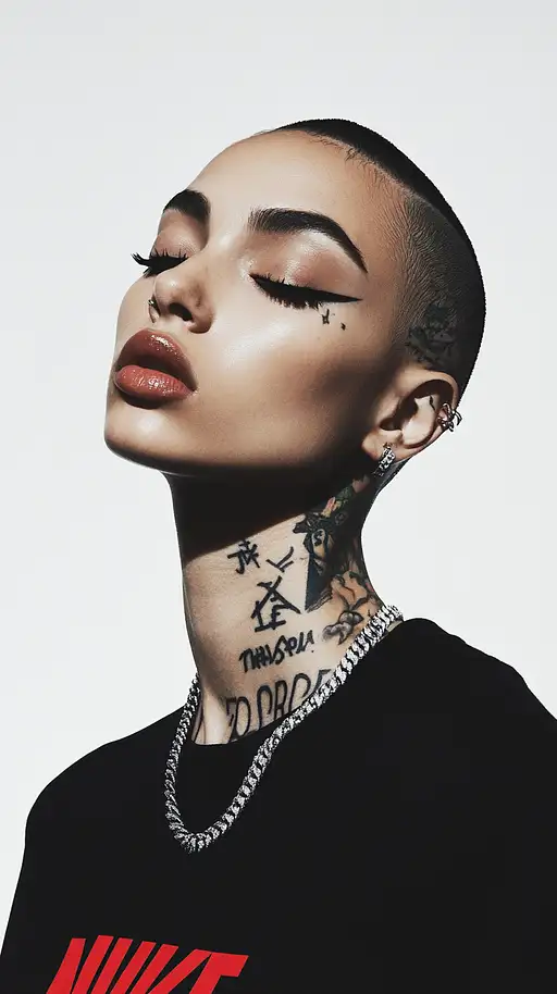 1 year ago Symetrical ultra Closeup of a dope faced tattoed model, dark mirror glazed Nike sport outfit, Minimalistic studio backdrop, by Alexander McQueen --ar 9:16 --personalize akiqp5w --stylize 300 --v 6.1 like_aleksandra 4 94