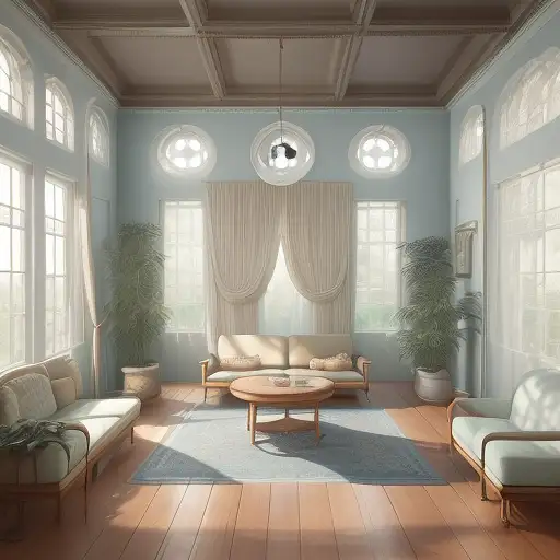 almost 2 years ago High resolution photography interior design, dreamy sunken living room conversation pit, wooden floor, small windows opening onto the garden, bauhaus furniture and decoration, high ceiling, beige blue salmon pastel palette, interior design magazine, cozy atmosphere; 8k, intricate detail, photorealistic, realistic light, wide angle, kinkfolk photography, A+D architecture a0f3236bf00 0 65