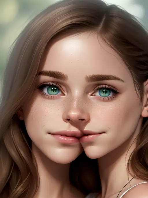 over 1 year ago ultra realistic, nathalie portman kissing emma watson, petite skinny freckles, blushing, flowing hair with emerald eyes beautiful face, , detailed eyes, cute graceful girl, eyes . in focus. perfect eyes, masterpiece, (detailed face) a619aac5c52 0 37