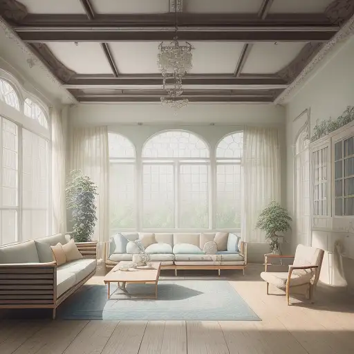 11 months ago High resolution photography interior design, dreamy sunken living room conversation pit, wooden floor, small windows opening onto the garden, bauhaus furniture and decoration, high ceiling, beige blue salmon pastel palette, interior design magazine, cozy atmosphere; 8k, intricate detail, photorealistic, realistic light, wide angle, kinkfolk photography, A+D architecture aa5797ceb8a 0 45