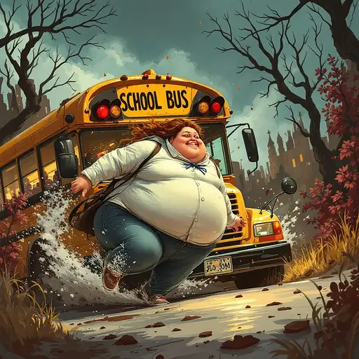 10 months ago big fat woman chasing after a chocolate cake on a school bus the chocolate cake is ln front of the bus aa5797ceb8a 0 52