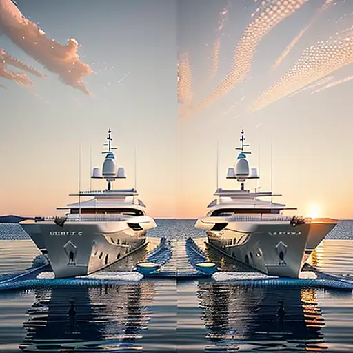 1 year ago 2 two white supersized yachts in St. Tropez sunrise, highly rendered, excellent photography, intricate details, realistic, cinematic lighting, octane rendering, hyper realism adfd25030e0 0 42