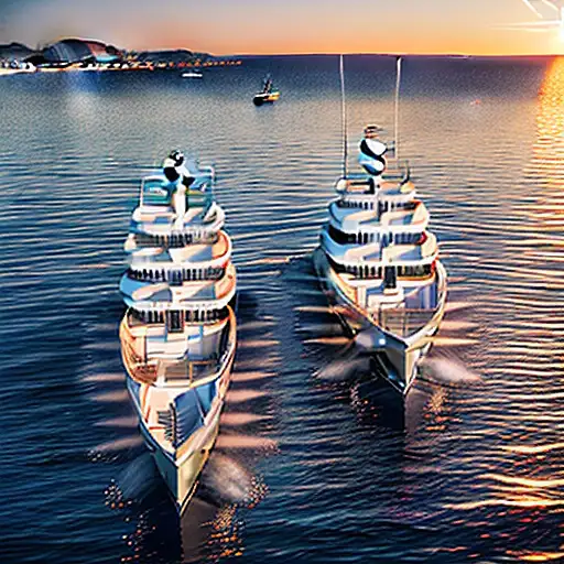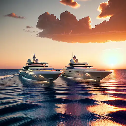 1 year ago 2 two white supersized yachts in St. Tropez sunrise, highly rendered, excellent photography, intricate details, realistic, cinematic lighting, octane rendering, hyper realism adfd25030e0 0 53