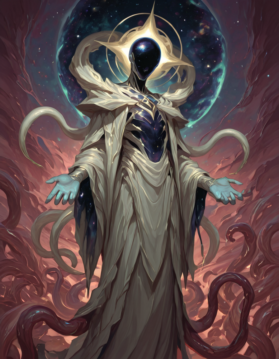 The Concept is 'Faceless Gods'. Otherworldly deities, both terrifying and divine, born from the depths of our collective unconscious, dreams, and nightmares.