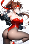 red hair, split ponytail, hair over eyes, clothing cutout, cleavage cutout, popped collar, soft lips,