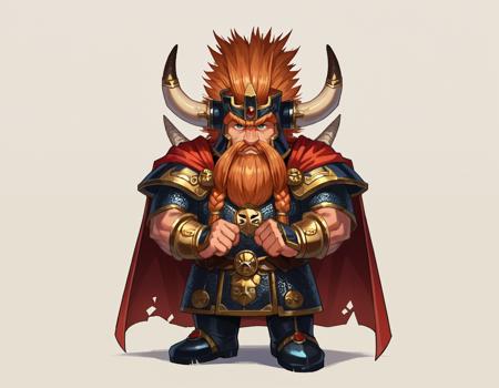 UngrimIronfist, beard, horned helmet, armor, cape,Weapon Tags: