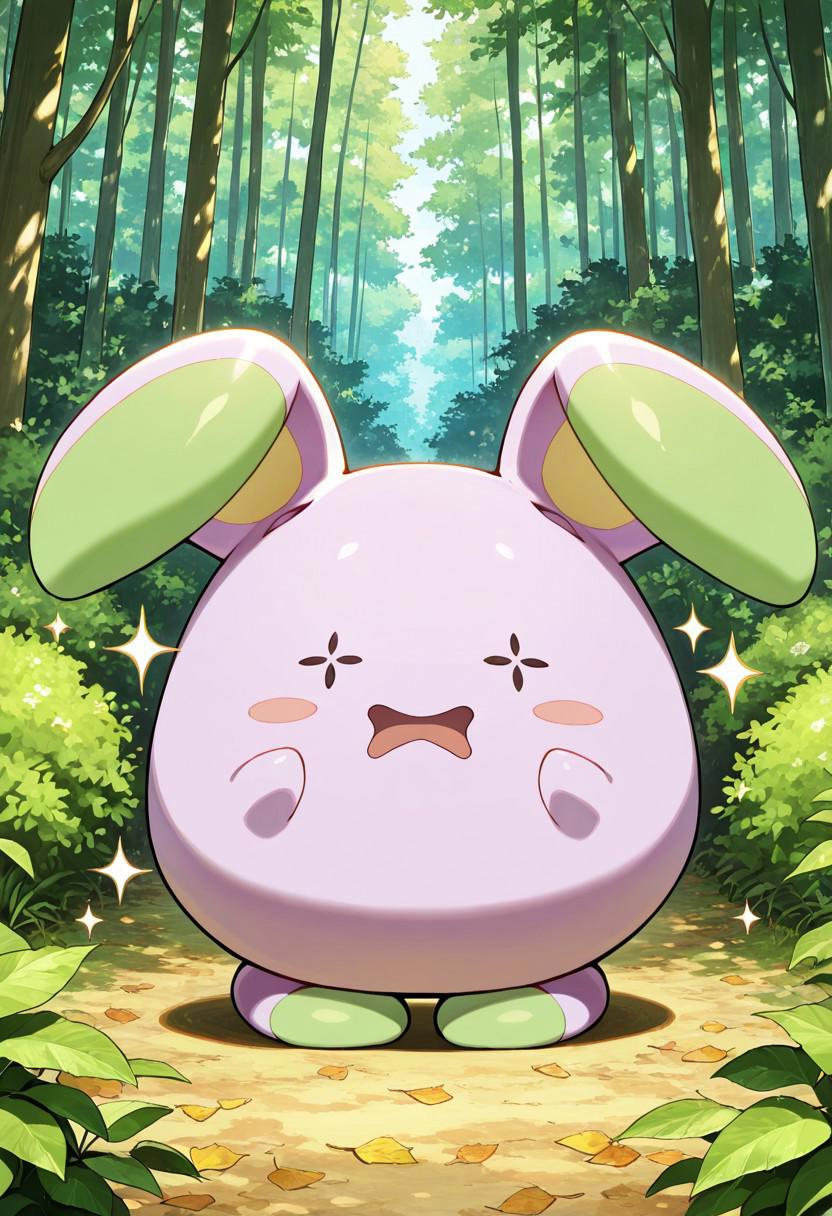 Shiny tags: Shiny_Whismur, light pink fur, green-tipped ears, green-tipped feet