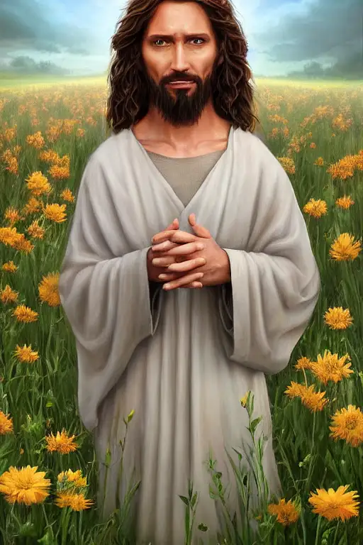 over 2 years ago hyperrealistic full length portrait of Jesus | standing in field full of flowers | detailed gorgeous face!! | full body!! | skimpy armor | god rays | intricate | elegant | realistic | hyperrealistic | cinematic | character design | concept art | highly detailed | illustration | digital art | digital painting | depth of field alikaysmontreal 0 110