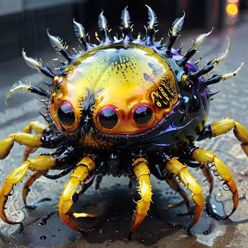 almost 2 years ago ferrofluid monster mixed between a crab and a wasp::5 on a new york street, tentacles, eyes on stalks, detailed iridescent, metallic, translucent, dramatic lighting, hyper futuristic, digital art Steps: 40, CFG scale: 8, width: 1024, height: 1024, Seed: undefined, Clip skip: 2, baseModel: SDXL allbad 0 100
