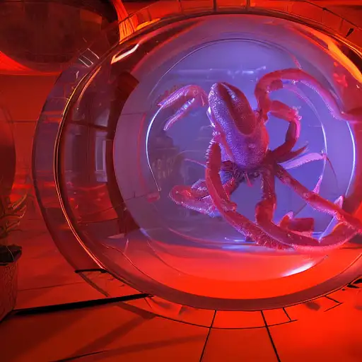 3 years ago a large transparent science fiction mass effect electronic force field glass containment chamber containing a slimy wet scorpion lovecraft alien tarantula monster in a furnished science fiction spaceship laboratory, dramatic lighting, octane, trending on artstation, volumetric lighting — w 6 4 0 Stable Diffusion 1 32