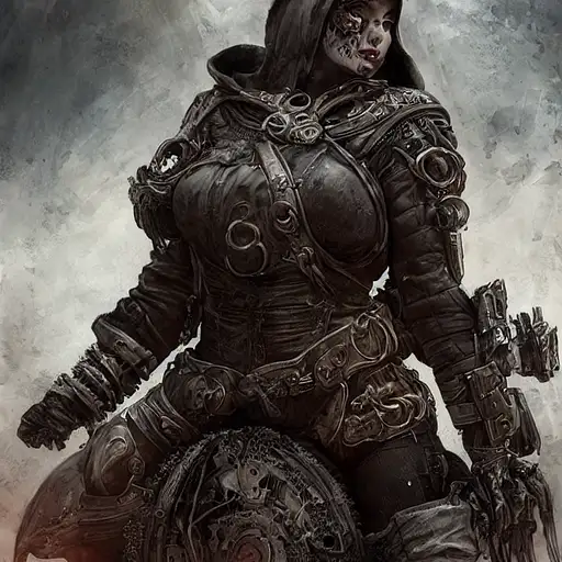 3 years ago beautiful apocalyptic woman in hooded cloak, standing on mad max panzer tank, hyper-detailed, smooth, sharp focus, 4k ultra hd, fantasy dark art, tank girl, artgerm, artstation, octane render, elegant, detailed digital painting, apocalyptic art, Francis bacon, gears of war, unreal engine Stable Diffusion 2 170