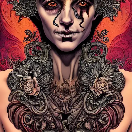 3 years ago a beautiful detailed front view portrait of a rotten corpse woman with ornate growing around morphing into skull, ornamentation, flowers, elegant, beautifully lit, artgerm, joshua middleton comic cover art, Stable Diffusion 1 78
