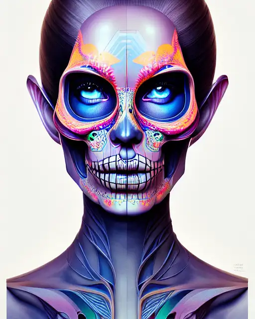 3 years ago ultra detailed beautiful female android, side portrait, sharp focus, highly detailed vfx portrait, scribble art, speed painting, geometric shapes, global illumination, by james jean and moebius and artgerm and liam brazier and victo ngai and tristan eaton. detailed, vector art, digital illustration, concept art, dia de los muertos, ( ( ( skull ) ) ). 8 k, hdr Stable Diffusion 1 93