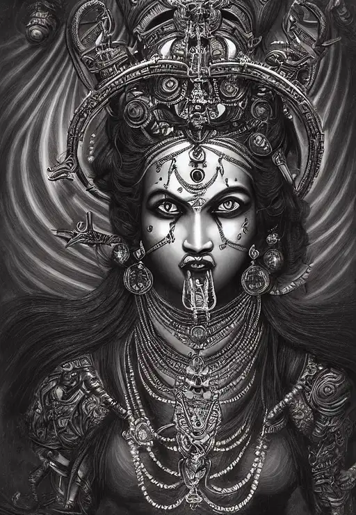 3 years ago perfectly centered portrait, front view of a beautiful biomechanical goddess kali, flowing hair, intense stare, sweet smile, symmetrical, concept art, intricate detail, volumetric shadows and lighting, psychedelic colors, vibrant, realistic oil painting by gustave dore Stable Diffusion 1 60