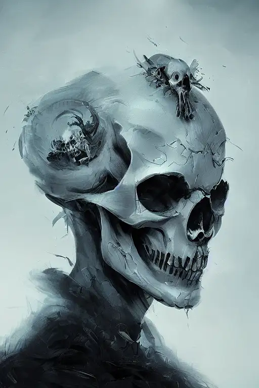 3 years ago concept art skull, brushstroke, close - up portrait, powerfull, intricate, elegant, volumetric lighting, scenery, digital painting, highly detailed, artstation, sharp focus, illustration, concept art, ruan jia, steve mccurry Stable Diffusion 1 41