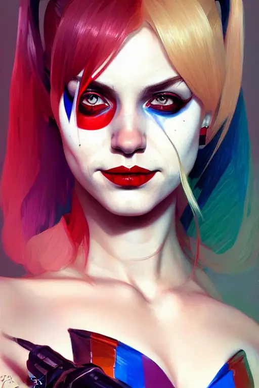 3 years ago a portrait of harley quinn, fantasy, sharp focus, intricate, elegant, digital painting, artstation, matte, highly detailed, concept art, illustration, ambient lighting, art by ilya kuvshinov, artgerm, alphonse mucha, and greg rutkowski Stable Diffusion 1 150