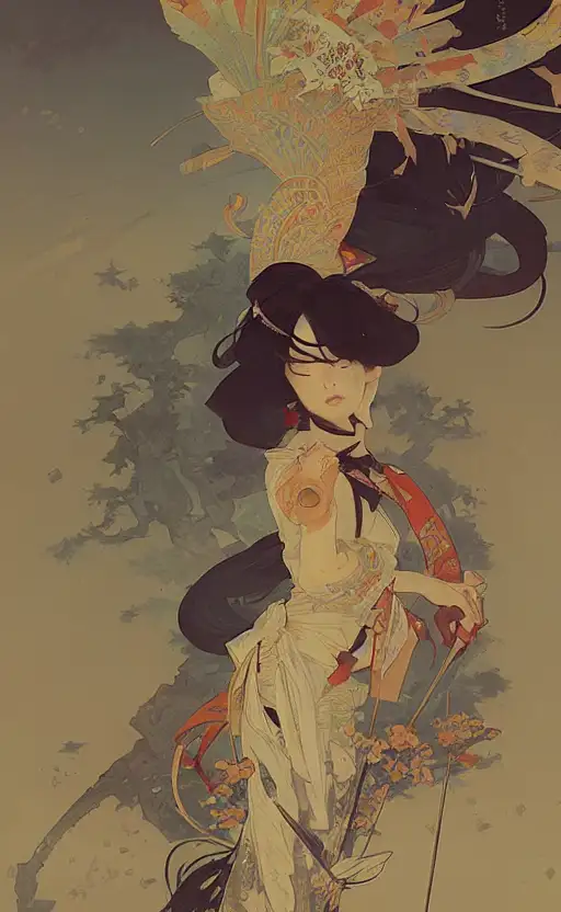 3 years ago personification of japan, highly detailed, digital painting, artstation, concept art, sharp focus, illustration, art by greg rutkowski and alphonse mucha Stable Diffusion 2 55