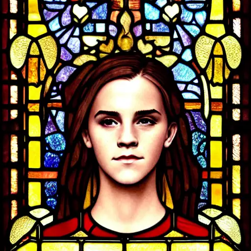 3 years ago a stained glass window of teenage emma watson as a medieval noblewoman, fantasy, intricate, elegant, highly detailed, digital painting, artstation, concept art, matte, sharp focus, illustration, luminist and baroque style Stable Diffusion 1 30