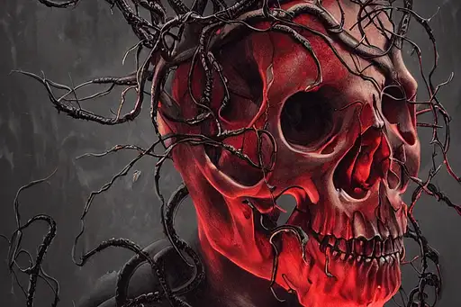 3 years ago realistic portrait beautiful detailed matte painting of cinematic movie scene a skinned skull, tentacles, black and red, thorns, vines, horror, created by gustave dore and greg rutkowski, high detailed, smooth draw, synthwave neon retro, intricate, realistic proportions, dramatic lighting, trending on artstation. Stable Diffusion 1 120