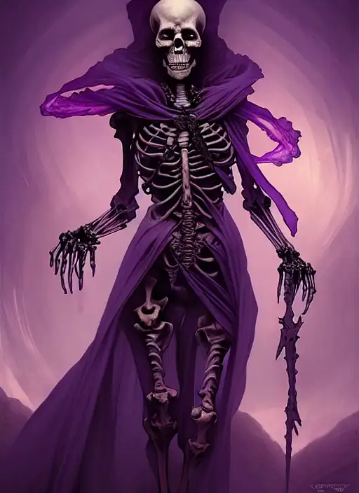 3 years ago skeleton necromancer, purple palette, cave landscape, fantasy magic, dark light night, intricate, elegant, sharp focus, illustration, highly detailed, digital painting, concept art, matte, art by wlop and artgerm and greg rutkowski and alphonse mucha, masterpiece Stable Diffusion 2 120