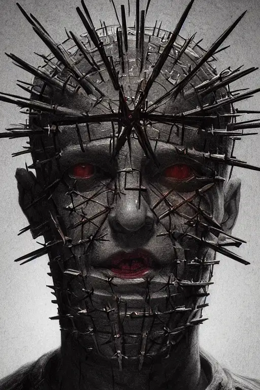 3 years ago realistic portrait beautiful detailed matte painting of cinematic movie scene hellraiser pinhead horror, created by gustave dore and greg rutkowski, high detailed, smooth draw, synthwave neon retro, intricate, realistic proportions, dramatic lighting, trending on artstation. Stable Diffusion 1 350