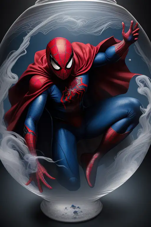 2 years ago mysterio, a formidable villain,real spiderman costume, full body shot, wears a deep red costume with intricate patterns resembling flowing smoke, high-collar cape billows dramatically, ((distinctive helmet with a rounded fishbowl-like dome)), conceals his face while housing swirling mist effects, enhance his illusionary powers b3cf0e64f69 0 23