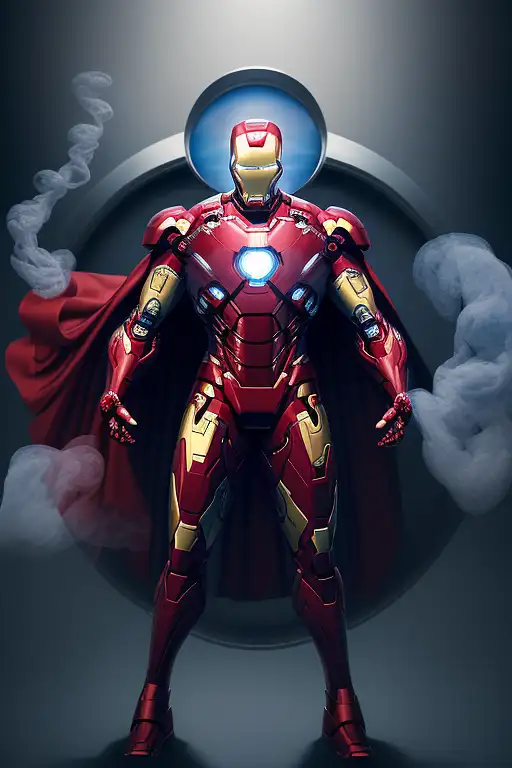 2 years ago Iron man, a formidable villain,real superman costume, full body shot, wears a deep blue and red costume with intricate patterns resembling flowing smoke, high-collar cape billows dramatically, ((distinctive helmet with a rounded fishbowl-like dome)), conceals his face while housing swirling mist effects, enhance his illusionary powers b3cf0e64f69 1 38