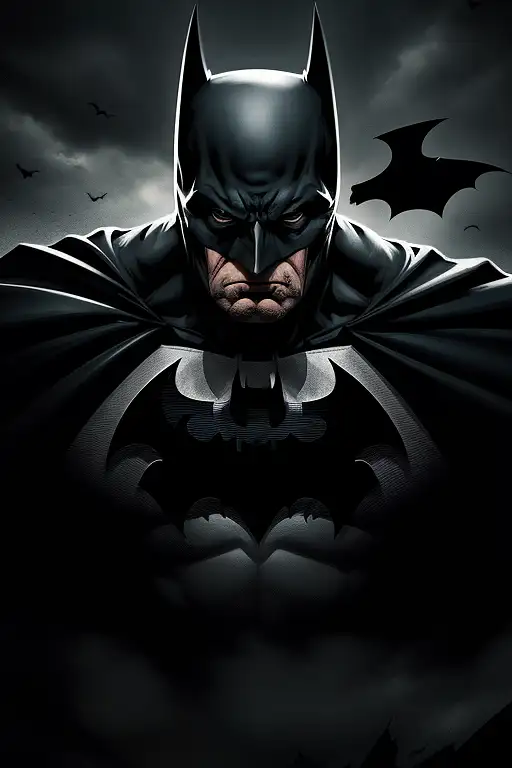 2 years ago a powerful and iconic portrait of Batman, with a angry expression and his cape billowing dramatically in the wind, artwork captures the strength and determination of the Dark Knight b3cf0e64f69 0 22