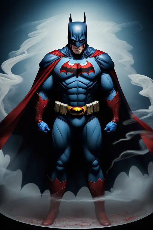 2 years ago Batman realistic, a formidable villain,real hulk costume, full body shot, wears a deep blue and red costume with intricate patterns resembling flowing smoke, high-collar cape billows dramatically, ((distinctive helmet with a rounded fishbowl-like dome)), conceals his face while housing swirling mist effects, enhance his illusionary powers b3cf0e64f69 1 38
