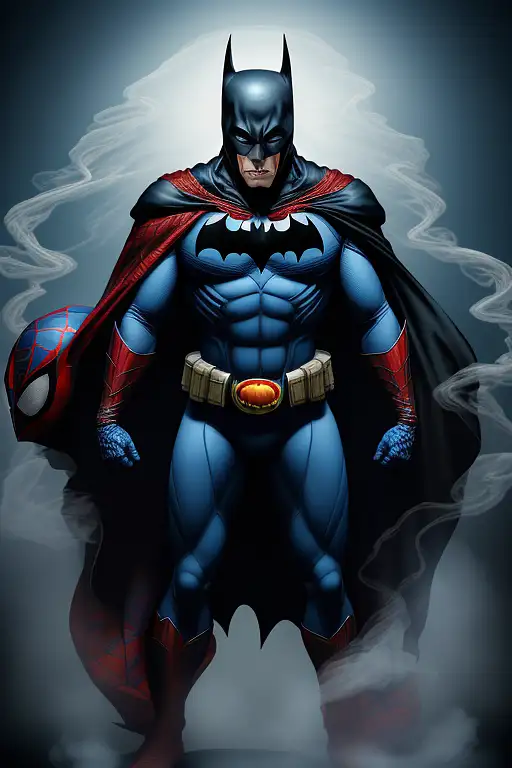 2 years ago Batman realistic, a formidable villain,real spiderman costume, full body shot, wears a deep blue and red costume with intricate patterns resembling flowing smoke, high-collar cape billows dramatically, ((distinctive helmet with a rounded fishbowl-like dome)), conceals his face while housing swirling mist effects, enhance his illusionary powers b3cf0e64f69 0 27