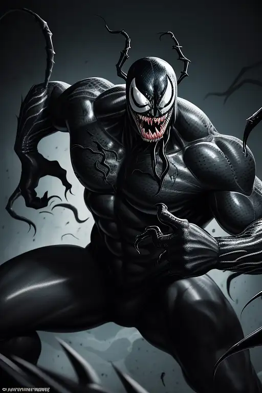 2 years ago Venom watch, imposing anti-hero, action pose, a sleek black symbiotic suit, a monstrous mouth full of sharp teeth, a long tongue, a large white spider symbol on his chest horror, detailed face b3cf0e64f69 1 58