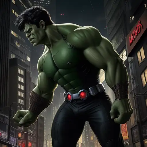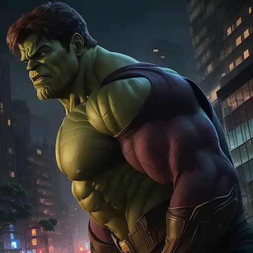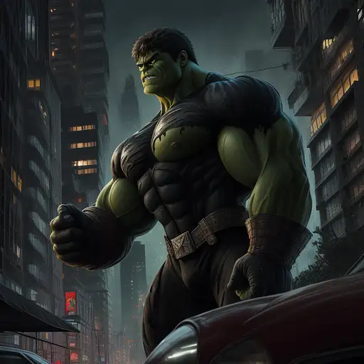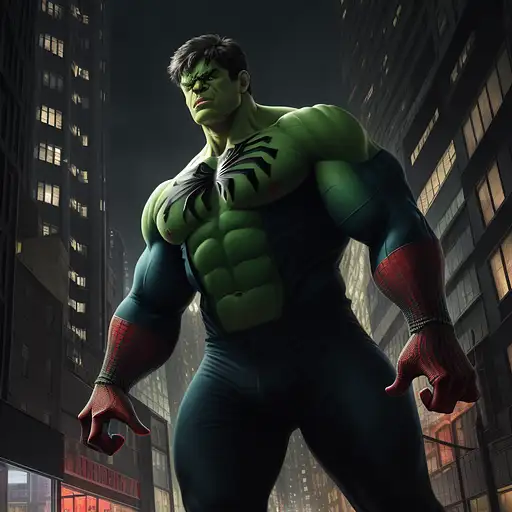 2 years ago Hulk with half spiderman costume, reddish eyes, urban avenue, modernist buildings from the year 1900, two parked cars, night scene, intricate details, rich textures, wide shot, cinematic, dark lighting, high detail, hd, photo, digital art, fantasy, ((best quality)), ((masterpiece)), (high-resolution:1.2) b3cf0e64f69 0 35