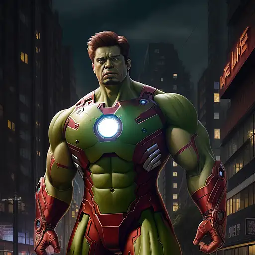 2 years ago hulk with full iron man costume, reddish eyes, urban avenue, modernist buildings from the year 1900, two parked cars, night scene, intricate details, rich textures, wide shot, cinematic, dark lighting, high detail, hd, photo, digital art, fantasy, ((best quality)), ((masterpiece)), (high-resolution:1.2) b3cf0e64f69 0 26
