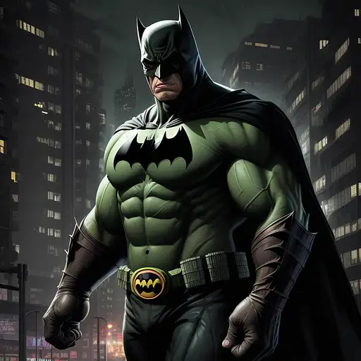 2 years ago hulk with full batman costume, reddish eyes, urban avenue, modernist buildings from the year 1900, two parked cars, night scene, intricate details, rich textures, wide shot, cinematic, dark lighting, high detail, hd, photo, digital art, fantasy, ((best quality)), ((masterpiece)), (high-resolution:1.2) b3cf0e64f69 0 33