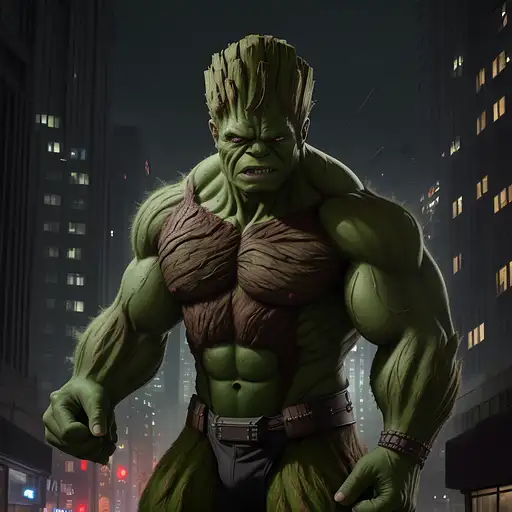 2 years ago hulk with full groot costume, reddish eyes, urban avenue, modernist buildings from the year 1900, two parked cars, night scene, intricate details, rich textures, wide shot, cinematic, dark lighting, high detail, hd, photo, digital art, fantasy, ((best quality)), ((masterpiece)), (high-resolution:1.2) b3cf0e64f69 0 37