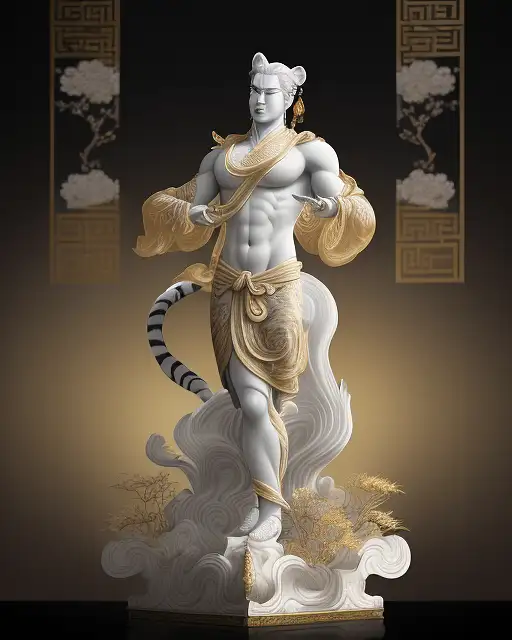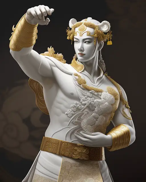 2 years ago pretty and coquettish, Tradition Chinese Ink Painting, tiger iron man, low angle view, octane render, sculpture statue porcelain white and gold marble, Intricate detail, ultra high details, made of chinese silk and embroidery flower motifs, 16k, photobashing, opulent fabrics, Cinematic lighting, ultra high definition b3cf0e64f69 0 45