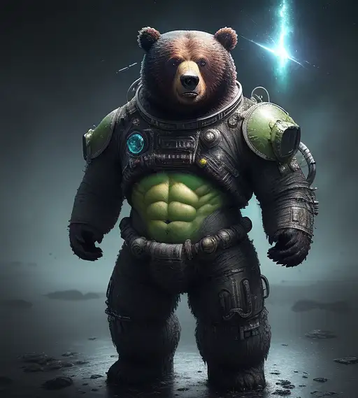 2 years ago the bear is dressed hulk and standing in an outer space suit, in the style of brushwork exploration, firecore, photo-realistic techniques, angura kei, soggy, cute and dreamy, frostpunk --ar 10:13 b3cf0e64f69 1 47