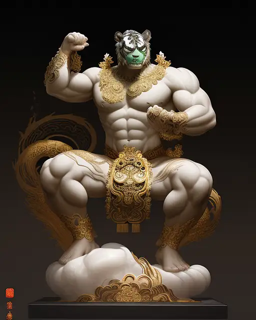 2 years ago pretty and coquettish, Tradition Chinese Ink Painting, tiger Superman, low angle view, octane render, sculpture statue porcelain white and gold marble, Intricate detail, ultra high details, made of chinese silk and embroidery flower motifs, 16k, photobashing, opulent fabrics, Cinematic lighting, ultra high definition b3cf0e64f69 0 40