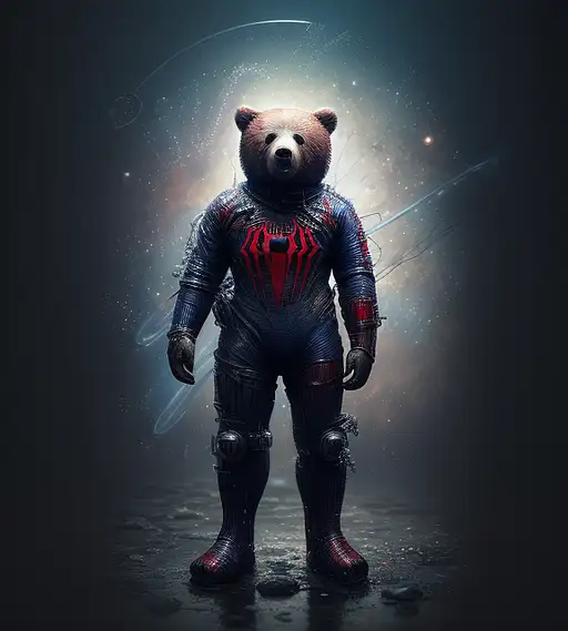 2 years ago the bear is dressed Spiderman and standing in an outer space suit, in the style of brushwork exploration, firecore, photo-realistic techniques, angura kei, soggy, cute and dreamy, frostpunk --ar 10:13 b3cf0e64f69 0 44